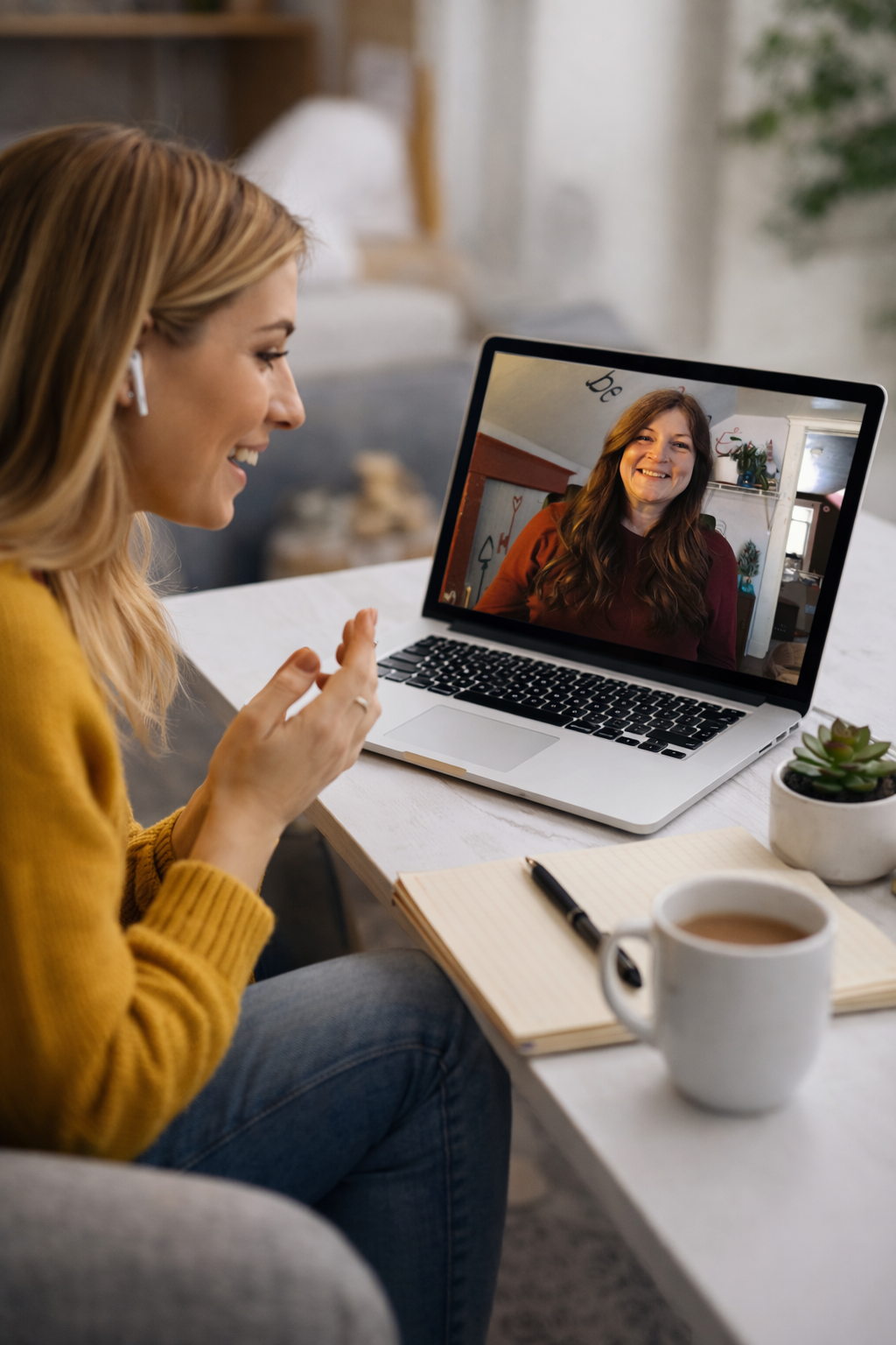 Many clients find that meeting from their own space allows for greater comfort, grounding, and nervous system support.
